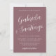 Os nomes dos casais de casamento estão escritos em um roteiro branco elegante. Os detalhes do casamento são escritos em uma fonte clássica de serifa. Raios muito sutis de luz solar tocam nas costas. Há uma versão com raios de luz solar na frente. Se preferir um design mais minimalista, podemos simplesmente apagar os raios solares. Este convite de casamento faz parte da Coleção Simples de Script e Luz do Sol.