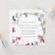 Um bonito convite de casamento quadrado floral que inclui uma coroa de flores púrpura e cor-de-água rosa de ervilhas, perfeito para primavera ou verão.