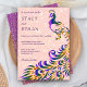 Incêndio aos seus convidados com este elegante convite para o casamento, com um belo pavão com a tipografia moderna contra uma rosa claro de fundo reluzente. Basta adicionar os detalhes do seu evento neste modelo fácil de usar para torná-lo um convite de tipo único. Sacudir a placa para revelar uma textura azul brilhante na parte traseira da placa.