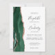 A borda esquerda deste elegante convite de casamento moderno apresenta uma esmeralda verde aquarela agate borda aparada com falsa rosa dourada. O texto personalizável combina a escrita manual de cinzas de carvão, as fontes em copperplate e itálico em um fundo branco. O verso fornece espaço para detalhes do casamento em um fundo branco sólido, junto com um código QR que os convidados podem digitalizar para visitar seu site e RSVP, o que economiza o custo de imprimir e enviar cartões RSVP separados.