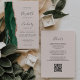 A borda esquerda deste elegante convite de casamento moderno apresenta uma esmeralda verde aquarela agate borda aparada com falsa rosa dourada. O texto personalizável combina a escrita manual de cinzas de carvão, fontes em copperplate e itálico em um fundo cor-de-rosa pincelado. O verso fornece espaço para detalhes do casamento em um fundo sólido de blush, junto com um código QR que os convidados podem digitalizar para visitar seu site e RSVP, o que economiza o custo de imprimir e enviar cartas RSVP separadas.