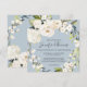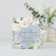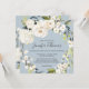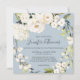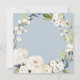 Com um popular esquema de cores neutro, este design de convite de casamento quadrado apresenta uma bela coroa de flores brancas de aquarela com um verde à direita sobre um popular fundo azul pérola empoeirado. As flores incluem rosas, híbridos e florais mistos correspondentes a um efeito de jardim fresco. Os emparelhamentos de texto usados neste design apresentam os nomes da noiva e do noivo de forma destacada usando um rosto de tipo manuscrito. Personalize o modelo de texto fácil de usar com seus detalhes de casamento.