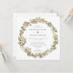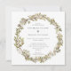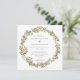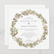 Um convite de casamento rústico moderno, que inclui uma coroa aquática com folhas verdes de oliveira e azeitonas pretas. Personalize com seus detalhes em cinzas escuras.