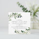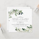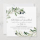 Este convite de casamento do parque de oliveiras moderno é perfeito para um casamento de boho. O design rústico, porém elegante, apresenta folhas botânicas de cor aquática simples e azeitonas pretas num pequeno galho com um toque mediterrânico clássico.
