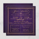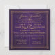 Este belamente profundo convite de casamento roxo de beringela com texto de ouro cremoso tem uma sensação vintage, antiquada, com design de cartas antiquado, incluindo elementos elaborados de escrita, uma faixa decorativa, estrelas e um amante suave. O convite para o rico é inspirado por posters de design e na moda. O texto diz: "Você é Convidado para o casamento de [nome personalizável] & [nome personalizável] [data personalizável] [hora personalizável]. Por favor, junte-se a nós para uma Celebração Inesquecível". Personalize ainda mais o convite com a cerimônia de casamento e as informações e endereços de recepção, cada um na sua própria caixa com fronteiras pontilhadas.