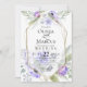 CONVITE DE CASAMENTO | Douradas formas geométricas com folhas de eucalipto, anêmonas lilases e violetas e flores de hydrangea - uma moldura geométrica de terrário multifacetada dourada adornada com buquês verdes e florais. O reverso é uma cor complementar coordenada. Personalizar texto, estilo de fonte, cor e tamanho. Esta é parte de um Conjunto de Papelaria de Casamento com casamento, chá de fraldas e outros artigos de papelaria.