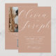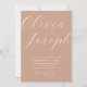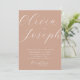 Adicione um toque romântico à sua celebração com este convite de casamento minimalista de pêssego quente. O fundo maleável de pêssego e a elegante caligrafia moderna criam uma design refinada, mas acolhedora, ideal para casamentos românticos, boho, rústicos, de verão ou de primavera. O verso inclui espaço para sua foto e um código QR para vincular convidados ao seu site de casamento ou RSVP. Disponível no formato impresso e no download digital. Este design versátil combina lindamente com paletas quentes, neutras ou florais.
