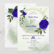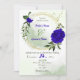 romântica flores azuis e brancas com algumas folhas verdes no convite para casamento da coroa dourada Os detalhes da relva são simulados