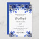 Um fundo branco, decorado com flores azuis e brancas. Personalize e adicione seus nomes e detalhes. Fundo: fundo azul.