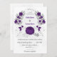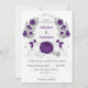 Romântica, roxo real e flores brancas com folhas prateadas, convite para o casamento da coroa botânica Os detalhes da brilha são simulados. É adequado para casamento e festas de noivado.