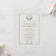 Símbolo da elegância, abundância e loftineza! Design de cartão único com uma crista real de folha de ouro falso, uma armação delicada, ramos de azeitona com flor branca, sobre fundo branco texturizado. Use a ferramenta Personalizar para adicionar suas informações. Por favor, visite minha Coleção Real de Casamentos de Crest Lush Greenery, Dourada.