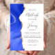 A borda esquerda deste elegante convite de casamento moderno apresenta uma real cor azul-d-água agata borda aparada com falso brilho dourado. O texto personalizável combina manuscrito, copperplate e fontes itálicas em cinzas de carvão em um fundo branco. O lado inverso apresenta um design real azul e dourado.