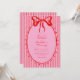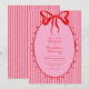Este convite caprichoso apresenta um laço de aquarela vermelha suculenta e uma moldura oval pontilhada simples contra um fundo listrado de vermelho e rosa. Perfeito para um casamento com estética preppy, casual ou de Valentin, este design charmoso fornece um visual doce e pintado à mão para sua celebração especial. Criado por Simply Farmhouse Press.