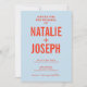 Este convite de casamento é perfeito para o seu casamento com design único. Um simples e elegante convite para modelo de casamento de laranja azul, minimalista e azul. Que apresenta um fundo azul pálido e brilhante. E os primeiros nomes da noiva e noiva laranja e moderna e noiva brilhante. e informações e fotos editáveis nas costas. Barato e é também um e-convite eletrônico digital se você quiser enviá-lo por texto ou email. Todas as informações são personalizáveis clicando no botão personalizar. Então pegue-o e faça-o seu para que você faça você convidar noivos e excitados.