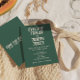 Este convite para o casamento é perfeito para o seu casamento se você está procurando um convite elegante único e fácil de ser editado. Um simples e elegante convite para modelo de casamento verde minimalista. Que apresenta um fundo verde esmeralda. E creme, pincelada leitosa, noiva ousada e nomes e sobrenomes do noivo. E uma citação personalizável nas costas " venha pelo amor, fique para a festa". Barato e é também um e-convite eletrônico digital se você quiser enviá-lo por texto ou email. Todas as informações são personalizáveis clicando no botão personalizar. Então pegue-o e faça-o seu para que você faça você convidar noivos e excitados.