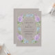 Raminhos delicados de lavanda e flores azul-celeste artisticamente dispostos em uma grinalda circular evocam um senso de romance atemporal. A paleta de cores suaves deste design estabelece um tom sereno e elegante para o seu dia especial. O estilo de aquarela arejada adiciona um toque de beleza orgânica.