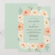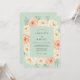 Uma mistura suave de verde menta e delicadas flores de pêssego cria um ambiente romântico e etéreo. Este design evoca uma suave atmosfera de primavera com sua disposição floral pictórica. As cores predominantes são verde suave e um espectro de tons de pêssego.