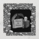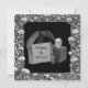 Romance preto & branco no estilo gótico. Caracterização quadro dos crânios e dos esqueletos com uma ampulheta e um corvo preto que olham sobre uma cabeça do crânio, uma garrafa do veneno & uns spellbooks. Seja certo e inscrea seus nomes no spellbook. Excelente para um casamento ou uma festa de aniversário gótico.