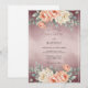 Este design apresenta uma suave lavagem de aquarela em tons de malva e rosa poeirento, criando uma atmosfera sonhadora. Arranjos florais delicados de rosas creme e pêssego ancoram o topo e a parte inferior da composição. Folhas e folhagens de sage verde adicionam um toque de natureza ao estético romântico. Perfeito para um evento de primavera ou verão, este design exala elegância e charme atemporal.