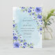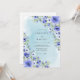 Lavagens delicadas de azul claro formam um pano de fundo suave para flores de pervinca vibrantes e violetas profundas. Um verde exuberante se entrelaça com pétalas pictóricas, criando uma atmosfera etérea e romântica. Este design evoca uma sensação de elegância serena, perfeito para um evento sofisticado.