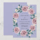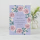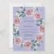 Este design apresenta um fundo suave de lavanda adornado com um arranjo exuberante de rosas empoeiradas. Flores brancas delicadas e folhas de sage verde adicionam um toque de fantasia à estética romântica. O estilo de aquarela pictórica cria uma atmosfera serena e elegante para um evento de primavera ou verão.