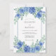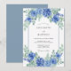 Este design apresenta uma disposição em estilo aquarela de rosas azuis vibrantes e hortênsias com acentos de folhagem verde exuberante. Os elementos botânicos criam uma atmosfera elegante e romântica, perfeita para uma ocasião sofisticada. O estilo pictórico confere um toque suave e artístico a esta bela composição floral.