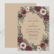 Uma rica tapeçaria de profundas flores borgonha e suaves flores rosadas, acentuadas por exuberante folhagem, cria uma atmosfera romântica e elegante. Este design evoca um sentido de charme vintage e beleza sofisticada. Toques de bagas carmesim adicionam um toque de charme rústico.