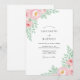 Flores cor-de-rosa suave e folhagem verde delicada criam uma atmosfera romântica e etérea. Este design evoca uma sensação de elegância suave e beleza natural, perfeito para uma ocasião encantadora. A representação artística de pétalas e folhas traz um toque de graça pictórica.