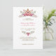 Este maravilhoso convite para o casamento apresenta uma coroa de flores vermelhas indianas, oferecendo um design romântico e ousado perfeito para o outono ou casamentos russos. Os tons ricos e quentes da coroa floral adicionam um toque de elegância e paixão ao seu dia especial. Personalize com seus detalhes de casamento para criar um convite cativante e personalizado.