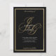 Um elegante monograma de moda dourada, monograma, na moda minimalista, convites de casamento românticos dourados e negros.