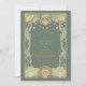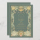 Elegante e eterno, este design de casamento apresenta intrincadas fronteiras florais de Art Nouveau em tons de ouro, aliado a sotaques botânicos suaves em um rico fundo verde. Uma escolha perfeita para casais que buscam uma celebração luxuosa e inspirada na safra com um toque de sofisticação artística. Ideal para casamentos de jardim, locais históricos ou assuntos clássicos modernos.