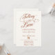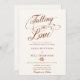 Um romântico, elegante, simples, clássico e moderno modelo de convite para casamento para os meses de outono - setembro, outubro, novembro. Apresenta uma caligrafia moderna e elegante com amplos florescimentos e o título "apaixonar-se" e um simples ramo das folhas de outono, o pássaro de cobre. Luxuoso, mas simples, clássico, mas chique, moderno, mas eterno. Uma escolha encantadora para um casamento no outono com cobre, laranja queimada, terracota, bege, vermelho, laranja e outras matizes de outono.