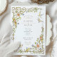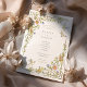 Este convite romântico de casamento é adorado com pássaros aquosos e flores pastéis, criando uma atmosfera caprichosa e encantadora. Inspirado em ilustrações botânicas antigas, o design apresenta o ouro de ornamentado floresce que envolve videiras delicadas, flores e passarinhos suavemente coloridos em voo de médio. A combinação evoca um sentimento de harmonia da natureza e a alegria de novos começos. A frente do cartão destaca os nomes dos casais rodeados de aves e flores, enquanto a parte de trás continua o quadro do canto floral, oferecendo espaço para detalhes adicionais de casamento ou um monograma. A paleta de cor suave de rosa-claro, azul-céu, amarelo-claro e verde-sábio adiciona um encanto de conto de fadas que é perfeito para casamentos de primavera ou verão, temas de jardim ou amantes da natureza. Uma bela escolha para casais que buscam uma mistura de elegância e encanto orgânico, impressa em papel premium para uma impressão duradoura.