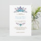 Este elegante convite de casamento apresenta uma bela coroa de flores azuis de cadete, criando um design romântico e refinado perfeito para casamentos modernos. Os tons suaves e legal da coroa floral adicionam um toque de serenidade e sofisticação ao seu dia especial. Personalize com seus detalhes de casamento para artesanato eterno e convite único.