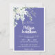 Crie a suíte perfeita de Casamento com este romântico e belo convite de casamento, com um delicado buquê de aquarela com flores brancas, complementado com verde e outras folhagem botânica no canto superior esquerdo, sobre um fundo roxo típico e contemporâneo. Edite facilmente os campos de modelo para adicionar os nomes de noiva e noiva em uma fonte branca de classe e os detalhes de data e localização em uma fonte moderna de todos os bonés. A parte traseira do cartão é personalizável com uma de suas fotos de noivado favoritas, complementada com uma elegante borda branca. Veja a coleção correspondente do "White Gentle Flowers - Romantic Periwinkle Wedding Suite" para ver todos os itens coordenadores.