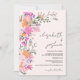 Casamento romântico de flores silvestres pastel primavera de verão com flores bonito selvagens em cor-de-rosa, pêssego, púrpura, lavanda, folhas verdes e muito mais, com uma tipografia com script escovado sobre um elegante e editável fundo rosa pastel macio.