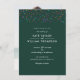 O confete colorido do arco-íris está acima de seus detalhes especiais de convite para celebração de casamento, definidos na na moda elegante tipografia moderna em um fundo verde esmeralda. O reverso apresenta sua própria foto especial ou deixa o vazio ou adiciona uma cor de fundo a seu favor. Projetado por Thisnotme©