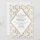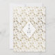 Branca cônica elegante e floral de ouro com ouro branco, Diamond Frame cortou convites para casamentos. Este convite romântico de casamento floral de luxo de ouro é perfeito para qualquer garota de vidro elegante e sofisticada. Este design é ideal para um evento de tendências e na moda. Design com a sua própria mensagem e informação. Todas as designs são impressas.