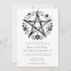 Um pentáculo de madeira, entrelaçado com florais vibrantes, está no coração desse convite de casamento, simbolizando os elementos, masculino e feminino, e o eterno ciclo de vida. Junte-se a nós para celebrar o amor e a unidade como Rosamund e Roland são tratados em uma cerimônia de Pagan Wicca. Envolvidos pela beleza da natureza, convidamos-vos a testemunhar este antigo ritual de ligação. Uma pequena estrela de madeira no fundo do convite. Você pode usar a ferramenta design simples para alterar a fonte do script ou para mudar para um tipo de servidor clássico, se preferir.