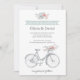 Convite de casamento da primavera com bicicleta e flores. Excelente para casamentos românticos de jardim e outros eventos temáticos boêmicos.