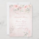 Um convite para casamentos pintado cor-de-rosa-pincelado, com rosas rosa-pinceladas e verde-prateado de eucalipto, com fundo de lavagem a aquarela cor-de-rosa-pincelada.