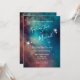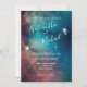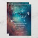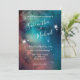 A Estrela Romântica Lit Sky Wedding Convite. Um céu noturno cheio de estrelas brilhantes é o pano de fundo para este romântico Convite de Casamento desenhado com tons claros e escuros de turquesa com estrelas brancas cintilantes. Para personalizar, basta inserir o texto no nosso modelo fácil, substituindo o texto de exemplo. Certifique-se de ver a Coleção de Casamentos Romântica Star Lite Sky para cartas e acessórios correspondentes.