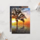 Convites de casamento de destino de praia com palmeiras de verão, oceano calmo, um pôr do sol romântico colorido, luzes cintilantes e uma modelo de texto de casamento que é fácil de personalizar.