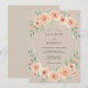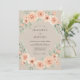 Este design apresenta uma paleta serena de rosas em aquarela de pêssego suave e damasco contra um fundo bege quente. Folhas delicadas de verde-sage se entrelaçam pelas arranjos florais para criar uma estética romântica e atemporal. A obra de arte evoca um senso de elegância vintage, perfeita para um evento sazonal sofisticado.