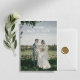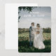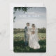 Anuncie seu casamento de destino com nosso cartão fotográfico "Save the Date" Romântico de Florença, Itália! Este design elegante apresenta uma foto deslumbrante do casal feliz, Lillian e Aaron, envoltos em um véu transparente contra uma paisagem italiana pitoresca, criando uma atmosfera íntima e sonhadora. A exuberante vegetação e o cenário panorâmico sugerem a experiência inesquecível que aguarda seus convidados em Florença.