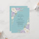 Rosas brancas suaves e delicadas flores de lavanda se entrelaçam com folhagem verde suave. Este design evoca uma atmosfera romântica e arejada contra um fundo aqua calmante. Perfeito para uma celebração clássica e elegante.