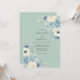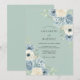 Flores delicadas em tons de azul ardósia e branco cremoso se entrelaçam com folhagem verde suave. Essa composição evoca um clima romântico e refinado, perfeito para um casamento clássico. O estilo de aquarela pictórica adiciona um toque artístico à imagem botânica.