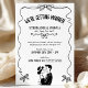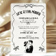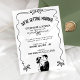 Rebelde e moderno, este convite preto e branco apresenta um quadro ondulado desenhado à mão, doces arcos de fita e uma ilustração casal encantadora para um sentimento amado e iluminado. Personalize os nomes, data, hora e local em minutos para criar um convite limpo e na moda que ajustado tudo, de uma celebração clássica a uma festa moderna divertida. Ele parece bonito impresso como está em monocromo, e você pode alcançar se você quiser ajustes de cores simples ou partes de coordenação para combinar com sua visão.