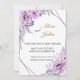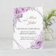 Um design romântico para um convite de casamento com moldura floral e rosas violetas e lilases alegres. É perfeito para pessoas que amam a cor lavanda, lilás e violeta. Pode ser facilmente personalizado.