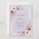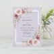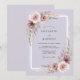 Este design apresenta um fundo de lavanda suave adornado com flores delicadas em aquarela em tons de malva e rosa poeirento. Rosas exuberantes e ramalhetes etéreos são complementados pela folhagem de eucalipto em verde-sage, criando uma atmosfera sonhadora e serena. Os elementos botânicos pintados evocam um senso de arte elegante perfeito para um evento de primavera ou boêmio.